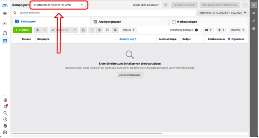 - Deine Werbekonto-ID wird links oben in der weißen Box neben dem Wort "Kontoübersicht" angezeigt. Siehe Screenshot unter der letzten Frage. Klicke ggf. auf die Box und dann auf "Weitere Werbekonten ansehen", um sie auszuklappen und weitere Werbekonten zu sehen